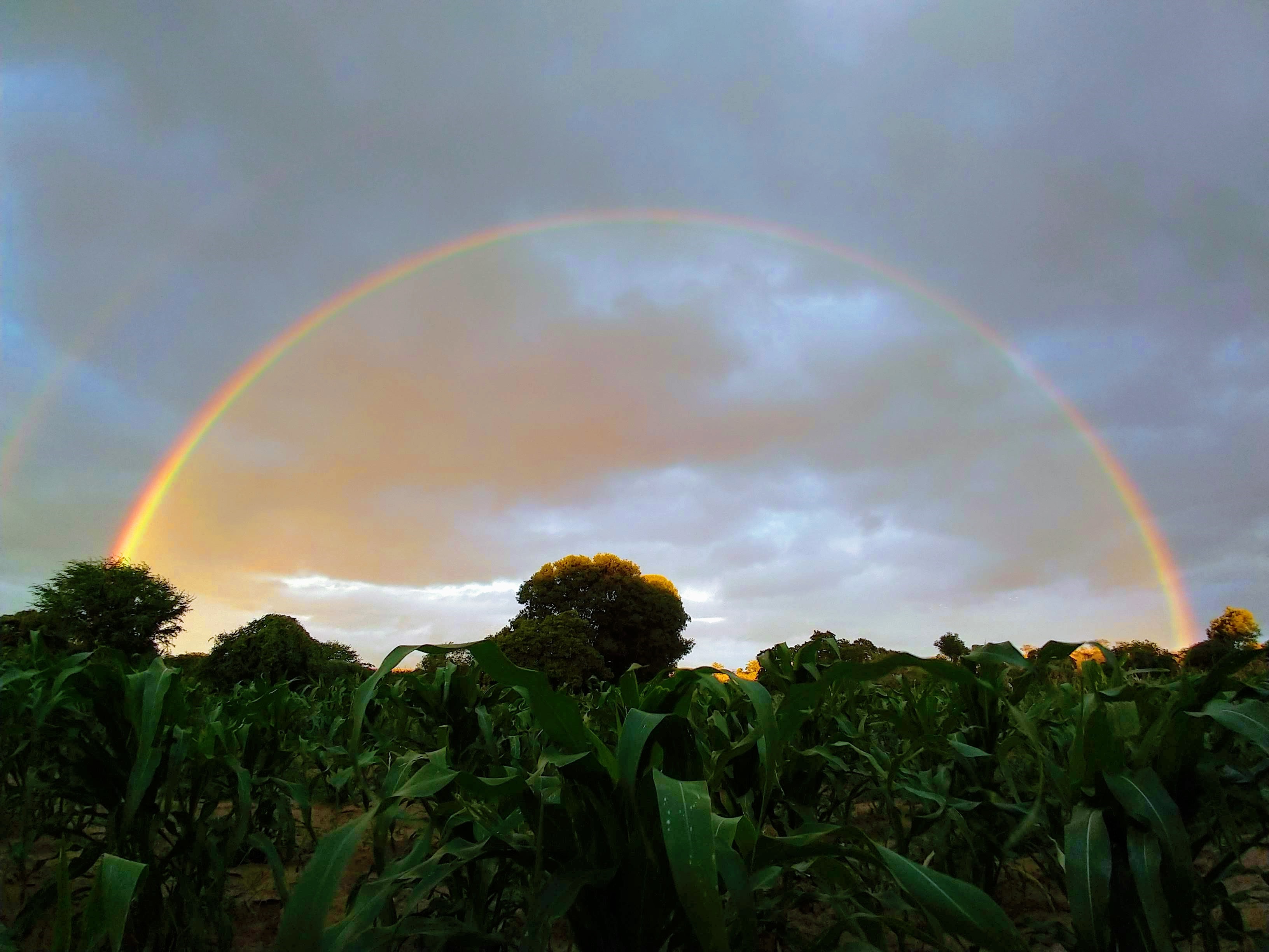 Ao fim daquele dia de trabalho colhendo e arando a terra, o céu nublado preparava chuva e, antes do sol se pôr, a cadência das cores de um arco-íris espelhavam a esperança de um bom futuro nos olhos do agricultor.