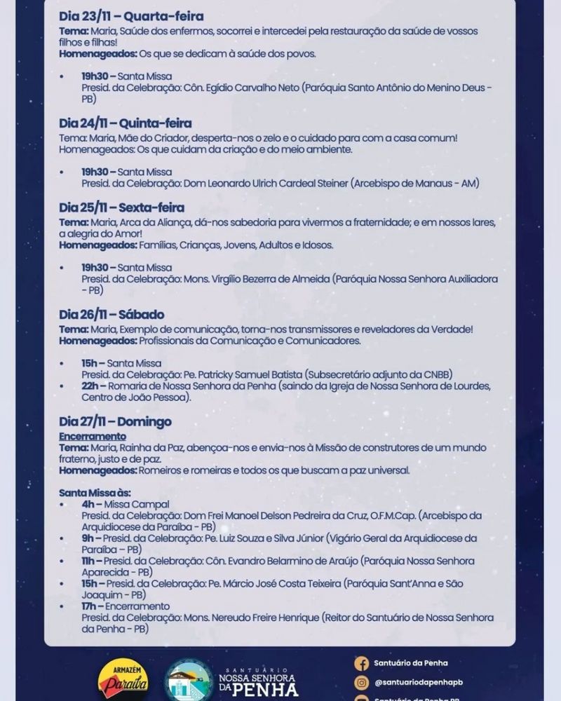 Após dois anos, a tradicional Romaria de Nossa Senhora da Penha vai voltar às ruas de João Pessoa. O evento, suspenso duas vezes por causa da pandemia, vai acontecer neste sábado (26).