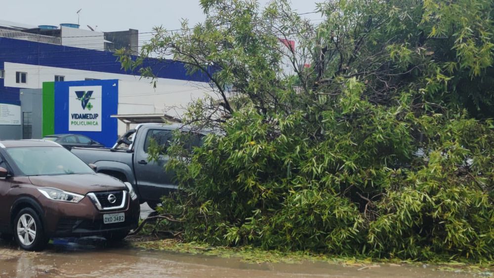 Árvore cai e atinge caminhonete em João Pessoa; Defesa Civil diz que chuvas devem continuar