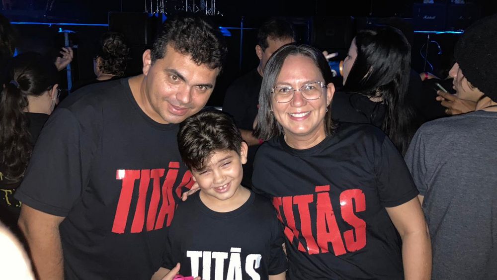 Jannayna Domingues, 41, e Gean Carlos, 42, são fãs dos Titãs e vieram de Patos, no Sertão paraibano, para assistir o show histórico. O casal trouxe o filho, João Gabriel, 8, que já cresceu ouvindo rock e é apaixonado pela banda. De pertinho do palco, a família curtiu junta a apresentação pela primeira vez.