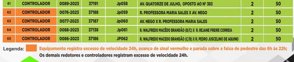 Em 14 equipamentos, o monitoramento vai além da velocidade. Há emissão de multa para quem avançar sinal vermelho ou parar em faixa de pedestres. A exceção ocorre nos horários entre 6h e 22h por questões de segurança, conforme a assessoria de comunicação da autarquia.