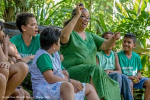 "Os griôs, na África, eles são os guardiões da memória. Aqui no território Vale do Gramame, eles são o guardião dessa memória cultural. E a gente faz relação com essa pedagogia griô, que é essa pedagogia que desenvolve esse saber dentro da roda. Então, a gente potencializa isso também quando a gente chega nas escolas e deixa fixo e guardado que a educação precisa construir esse caminho com os fazedores de cultura, com os griôs, que são as pessoas que detêm essa memória, que são os guardiões dessa memória", explicou Penhinha Teixeira, coordenadora pedagógica do projeto.