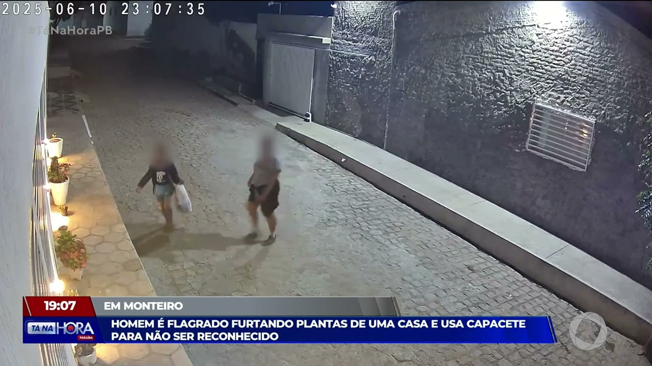 Homem é flagrado furtando plantas de uma casa e usa capacete para não ser reconhecido - Tá na Hora